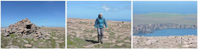 It had been very wet and very windy all night, so we didn't sleep too well and it was a slow start to the day. We drove to the west coast to Maywick and went for a walk along the cliffs, looking across to West Burra where we had been yesterday. Went for a walk on the beach before driving south to St Ninian's Isle where we found a sheltered spot and had some lunch.